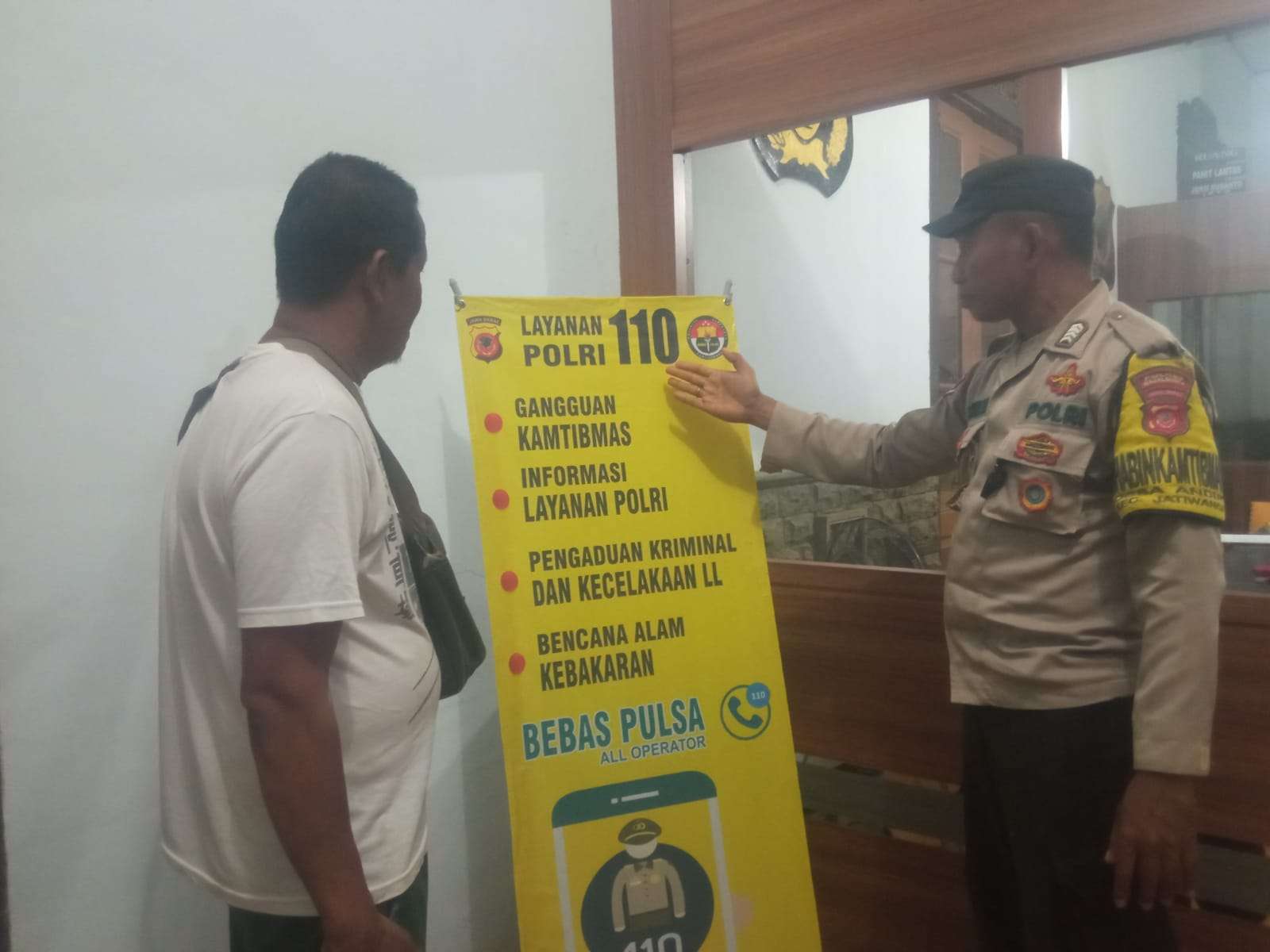 “Masyarakat yang melakukan panggilan ke nomor akses 110 bakalan langsung terhubung operator yang akan memberikan layanan berupa informasi, pelaporan (seperti kecelakaan, bencana, kerusuhan, dll) bahkan hingga pengaduan seperti penghinaan, ancaman, tindakan kekerasan” pungkas Kapolsek