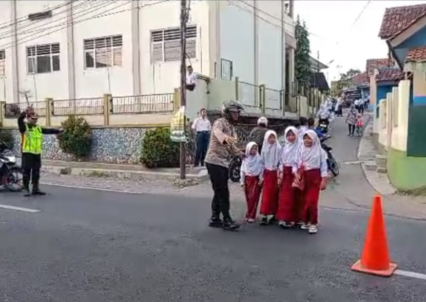Majalengka – Polisi di Maja, Polres Majalengka,Polda Jabar, memberikan pelayanan prima di pagi hari dengan membantu menyeberangkan anak-anak sekolah di wilayah Kecamatan Maja, Kabupaten Majalengka, pada Rabu (20/9/2023). Tindakan ini dilakukan sebagai upaya untuk memberikan perlindungan dan memastikan keselamatan anak-anak saat mereka berangkat sekolah.