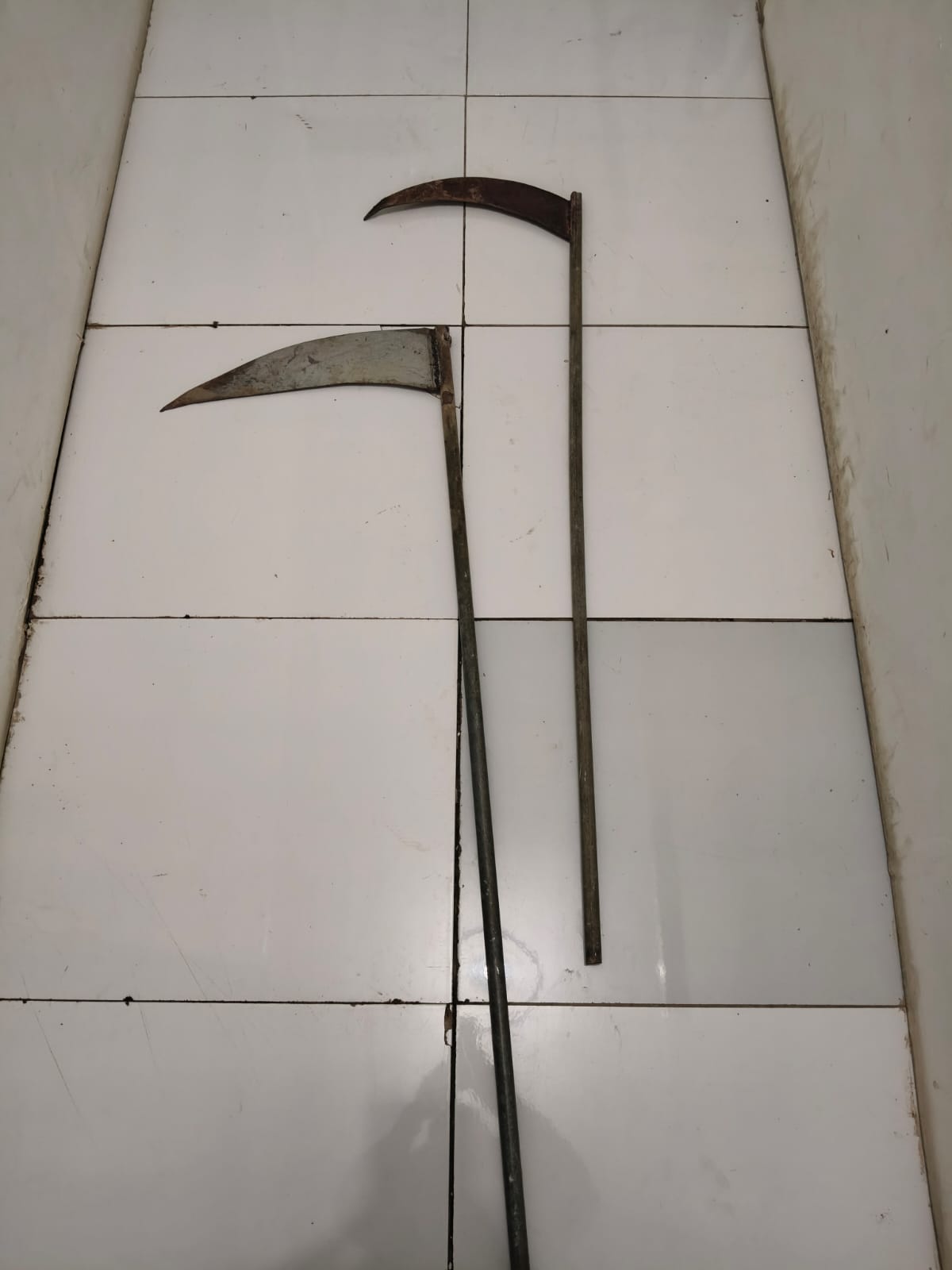 Sementara remaja lainnya melarikan diri, namun petugas berhasil mengamankan dua bilah senjata tajam jenis tongkat malaikat yang dibuang oleh kelompok remaja tersebut.
