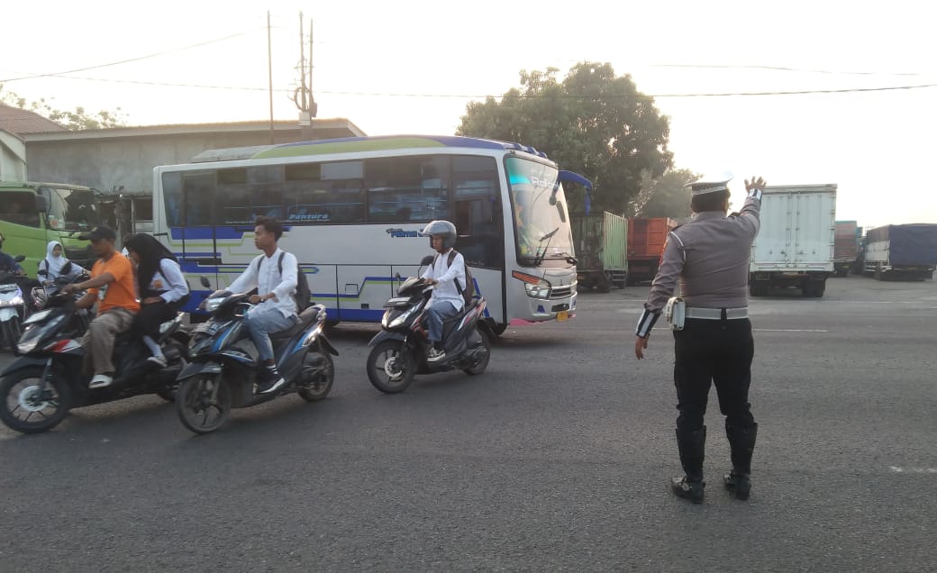Lebih lanjut, AKP Suripto menyampaikan bahwa pengaturan lalu lintas juga diiringi dengan imbauan tertib berlalu lintas kepada para pelajar dan pengendara yang melintas.