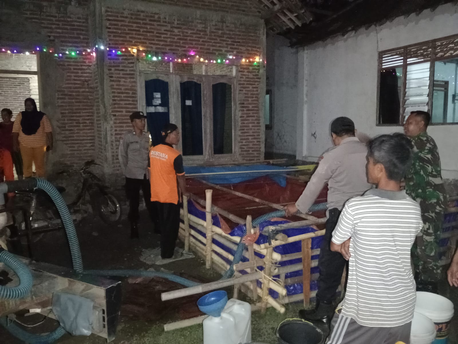 “Alhamdulilah hari ini dapat kiriman air dari pak Polisi. Jerigen saya, semua saya antrikan dan di isi air bersih, suwun pak Polisi” ujar Pardi.