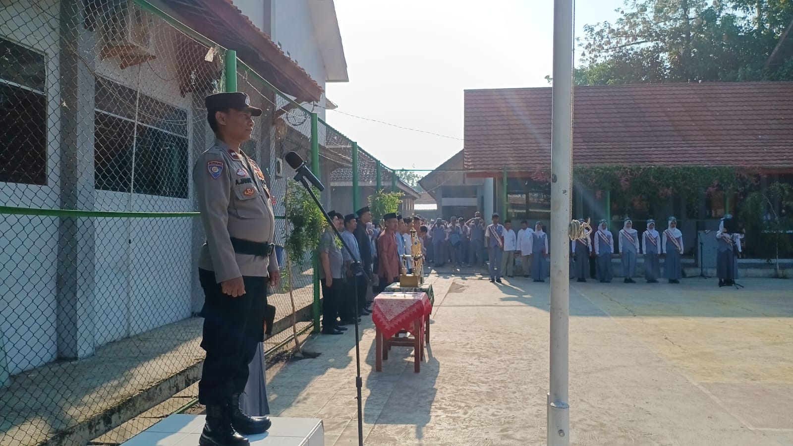 Kegiatan ini digelar saat upacara bendera dan dihadiri Kepala Sekolah, guru, staf TU, serta seluruh siswa-siswi.
