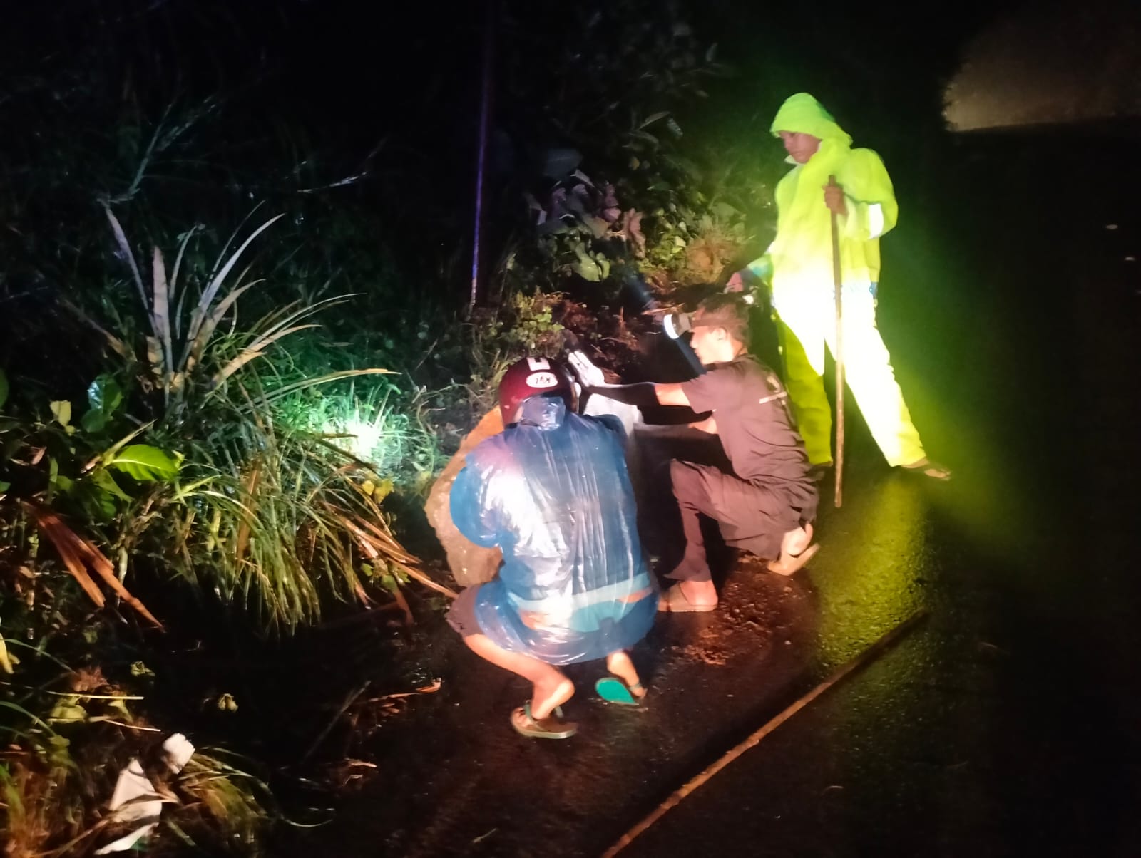 Kegiatan evakuasi yang dimulai pukul 19.15 WIB sampai selesai, melibatkan personel Polsek Sine dan tiga relawan LPG yang sigap membersihkan batu-batu longsor dari jalan yang terganggu akibat peristiwa tersebut.