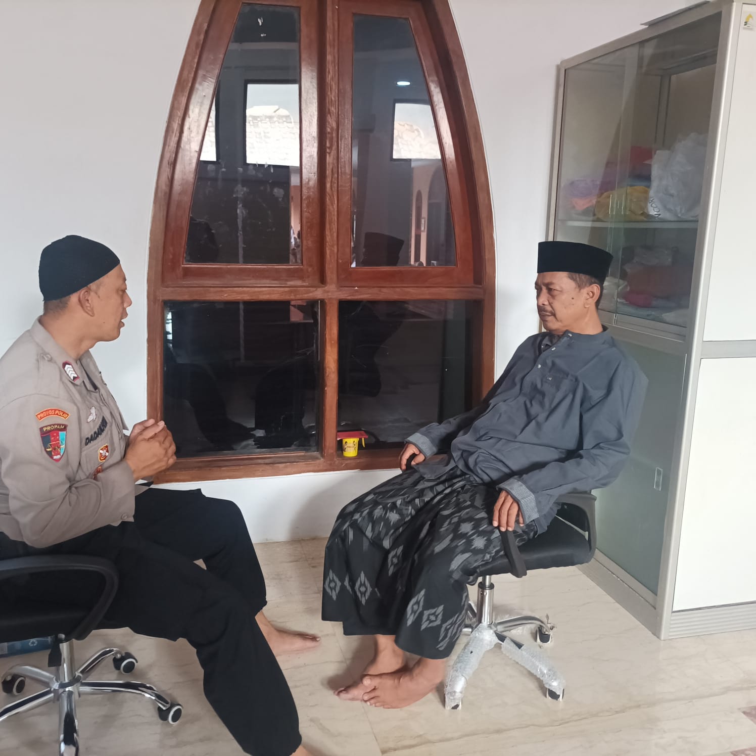 Majalengka,– Bripka Dadan Herdiana, Polisi RW Polsek Majalengka Kota, Polres Majalengka, Polda Jabar, menyambangi pengurus DKM Masjid Al-Iman, Ustadz Ahmad, dalam kegiatan Patepang Sono Sareng Ulama. Acara ini berlangsung di Masjid Al-Iman, Kabupaten Majalengka.Kamis (13/6/2024).