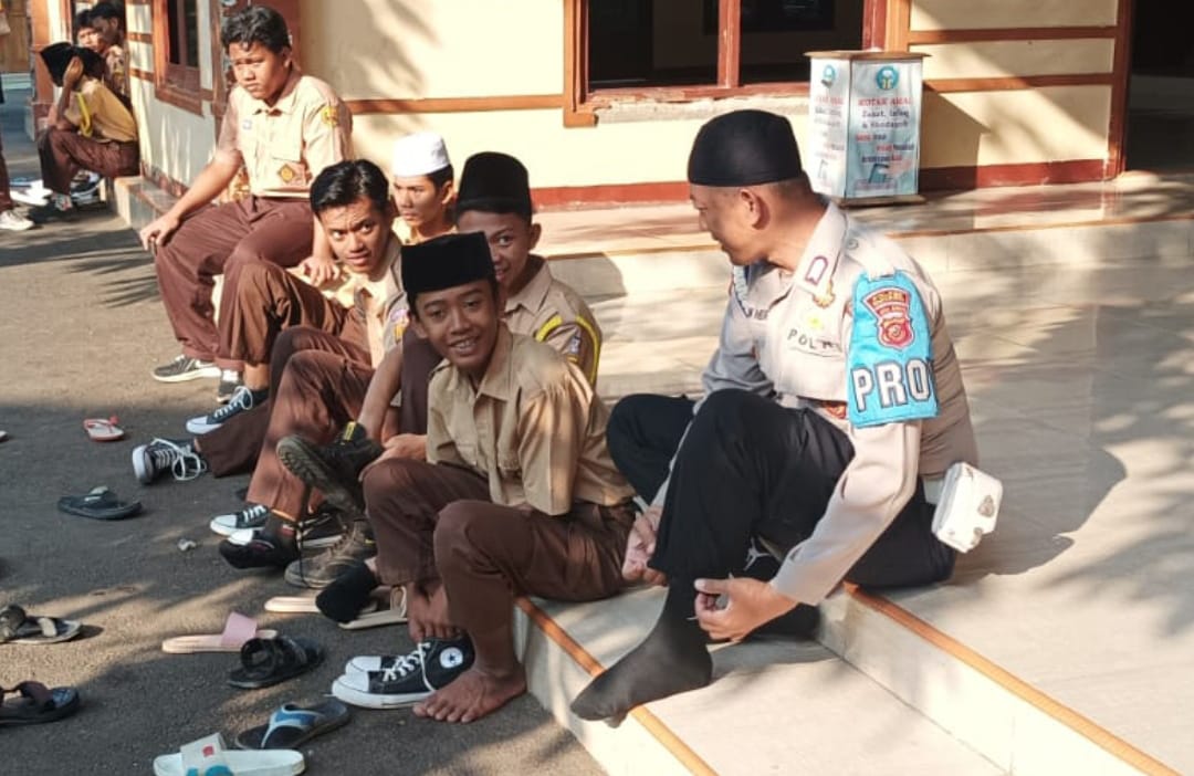 Majalengka – Polisi RW Polsek Majalengka Kota, Polres Majalengka, Polda Jabar, Bripka Dadan, meningkatkan komunikasi dan interaksi dengan pelajar di wilayah hukum Polsek Majalengka Kota. Pada Jumat (24/5/2024), Bripka Dadan melakukan pendekatan dengan unsur pelajar dan memberikan imbauan kamtibmas di lingkungan dekat mushola sekolah.