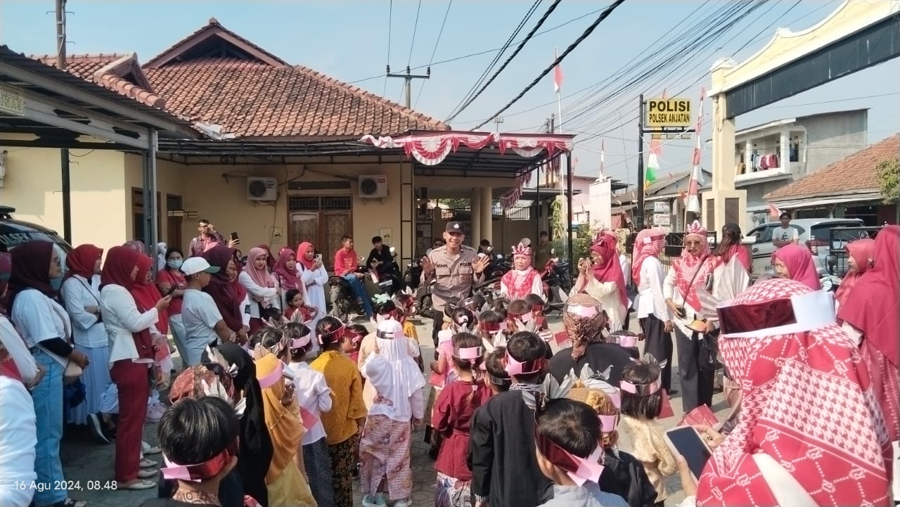 Indramayu — Polsek Anjatan jajaran Polres Indramayu, Polda Jabar menerima kunjungan dari TK Anugrah Pekerti Nusantara Yayasan APN Patrol, Kabupaten Indramayu, Jum’at (16/8/2024) kemarin.