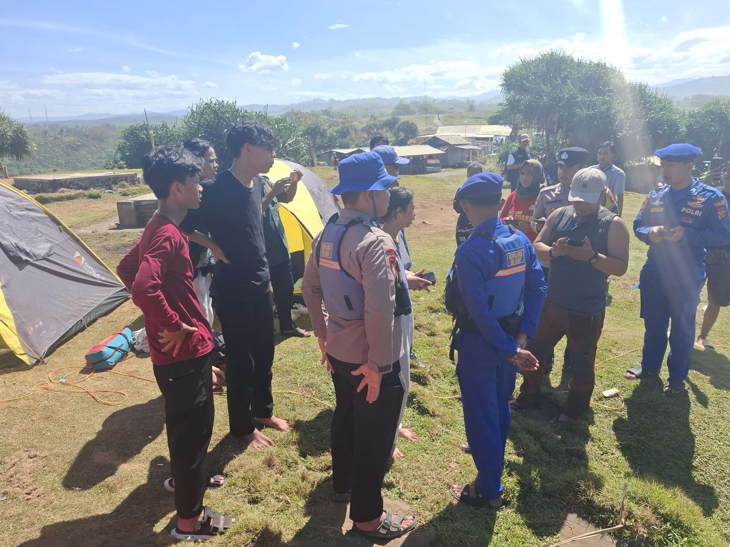 Kasat Polairud Iptu Aep Saprudin mengatakan kejadian bermula sekitar pukul 09.00 WIB, tiga orang korban bersama beberapa rekannya turun dari bukit Puncak Guha menuju bibir pantai untuk berenang.