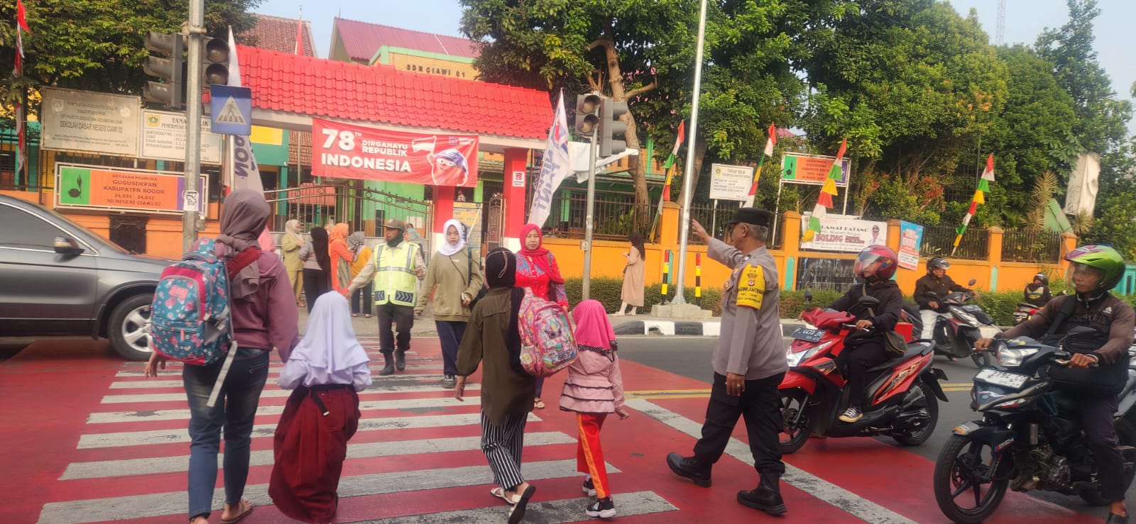 Polres Bogor Polda Jabar – Pelayanan pagi untuk Masyarakat di lapangan Membantu penyebrang jalan anak sekolah,dan masyarakat Bhabinkamtibmas Desa Bendungan Polsek Ciawi Polres Bogor Aiptu Muzamil ,Giat Rutin Pelayanan pagi dan gatur lalin pagi di SDN, Ciawi 1 dan 2 (09/08/2023).*