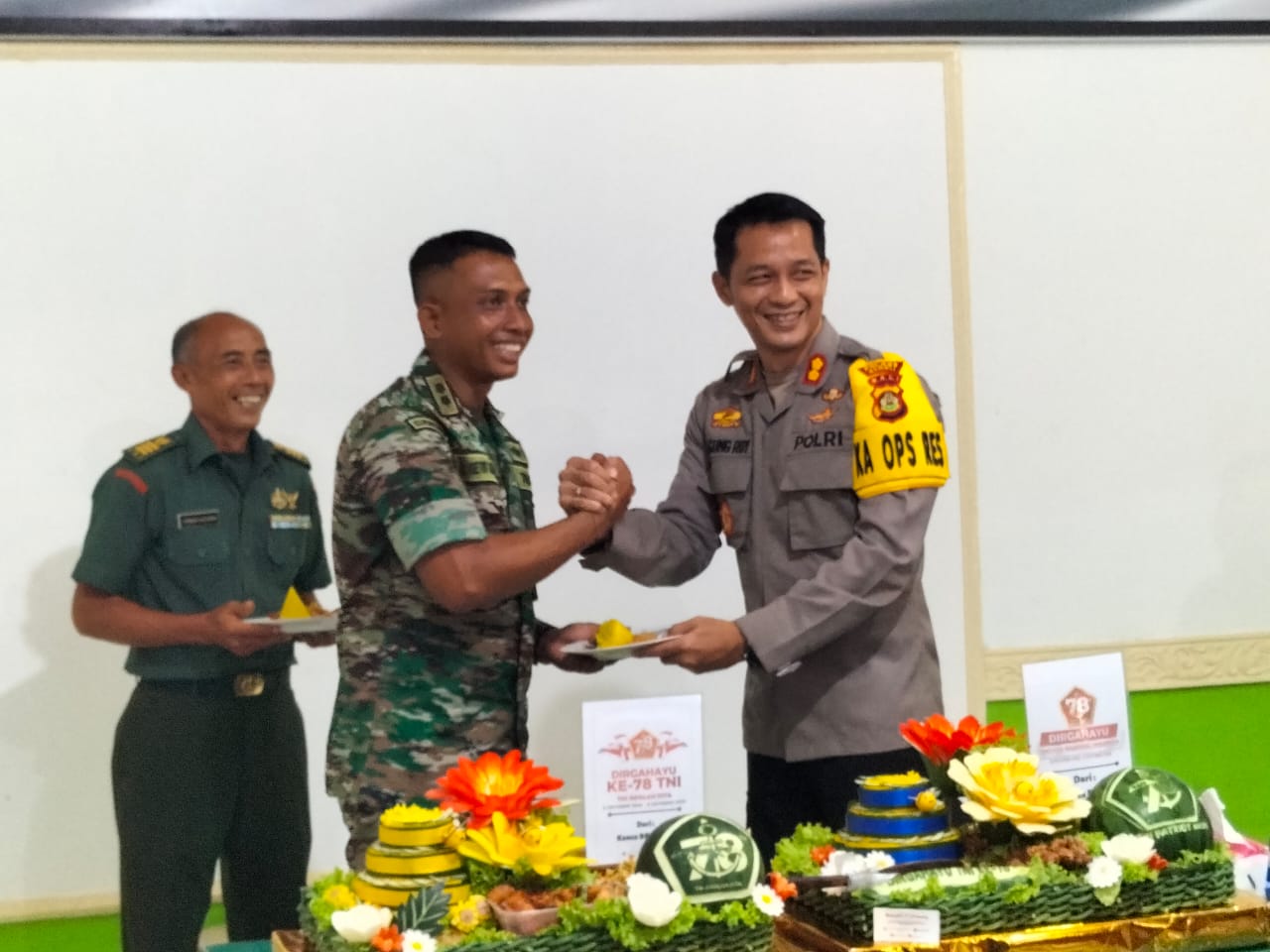 Lebih lanjut disampaikan oleh Kapolres bahwa TNI dan Polri merupakan alat negara, maka sudah seharusnya selalu sinergi sesuai dengan tema yang diusung oleh TNI dalam menyambut HUT ke 78 ini yaitu TNI Patriot NKRI pengawal Demokrasi untuk Indonesia maju. Dengan tema tersebut maka antara Kodim dan Polres selama ini selalu sinergi dalam mengamankan daerah. Banyak sekali kegiatan yang dilakukan secara bersama – sama sehingga hasilnya memuaskan.