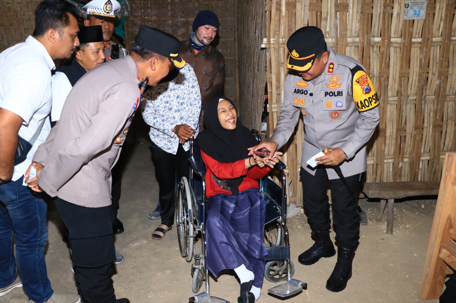 Kapolres Ngawi AKBP Argowiyono, S.H., S.I.K., M.Si., mengatakan bahwa, “Rumahnya pak Bambang ini, layak dibedah dan dibangun kembali agar adik Angeli yang memakai kursi roda bisa beraktifitas di dalam rumah dengan lancar.”