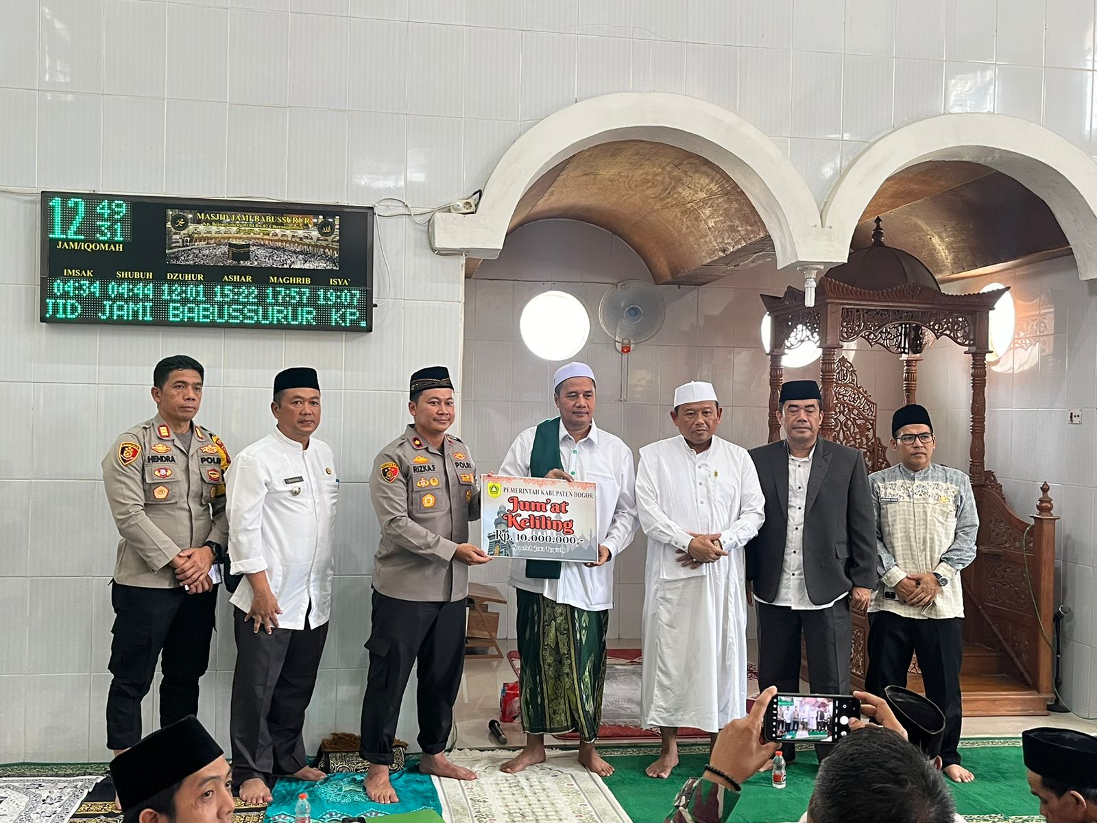 Sebagai wujud kepedulian, Wakapolres Bogor menyerahkan bantuan untuk DKM Masjid Babussurur, yang diterima langsung oleh pengurus masjid. Kegiatan kemudian dilanjutkan dengan ramah tamah bersama jamaah dan tokoh masyarakat.