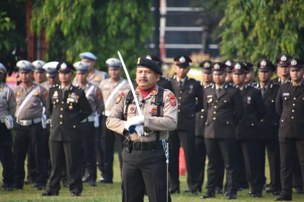 Polres Bogor – Upacara peringatan hari Bhayangkara ke 77 Tahun 2023 untuk menghormati jasa para polisi Indonesia terdahulu, di gelar Polres Bogor pada Sabru 1 juli 2023, di lapangan tegar beriman, kecamatan Cibinong Kabupaten Bogor.