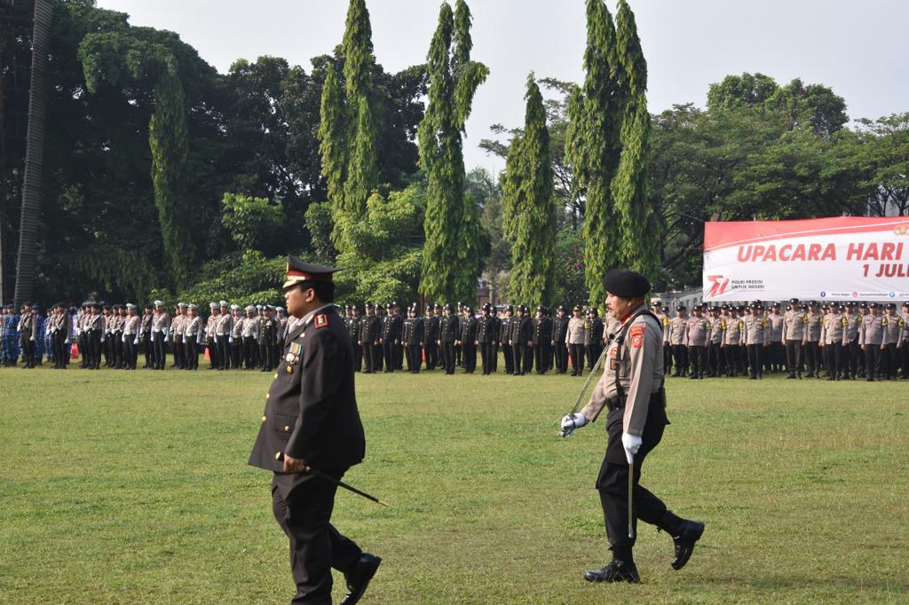 Polres Bogor – Upacara peringatan hari Bhayangkara ke 77 Tahun 2023 untuk menghormati jasa para polisi Indonesia terdahulu, di gelar Polres Bogor pada Sabru 1 juli 2023, di lapangan tegar beriman, kecamatan Cibinong Kabupaten Bogor.