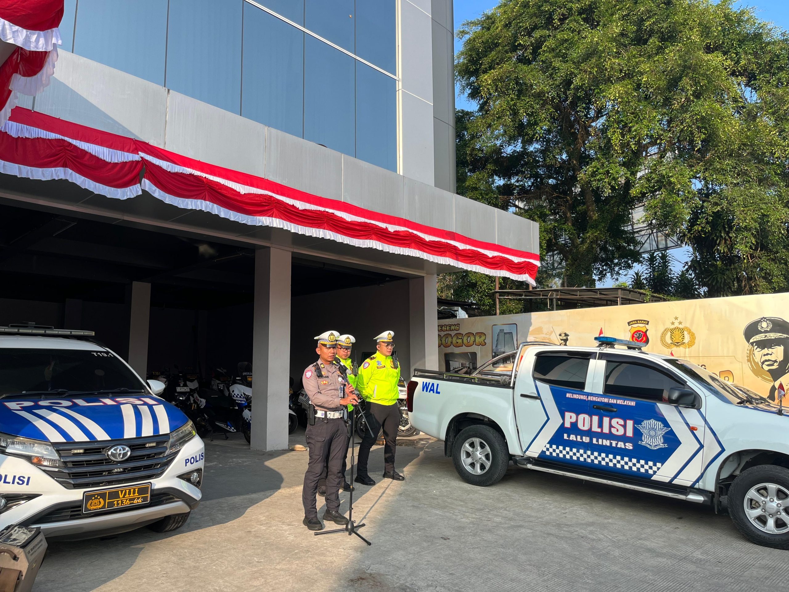 Bogor – Untuk mengantisipasi lonjakan kendaraan wisatawan menuju kawasan Puncak pada akhir pekan, Satuan Lalu Lintas (Sat Lantas) Polres Bogor menggelar Apel Pengamanan Jalur Puncak pada Sabtu pagi (23/8). Kegiatan ini dipimpin oleh Kaur Bin Ops Sat Lantas Polres Bogor, IPTU Ardian Novianto Ashari, A.Md., S.Kom., dan diikuti oleh personel lalu lintas yang diterjunkan ke lapangan.