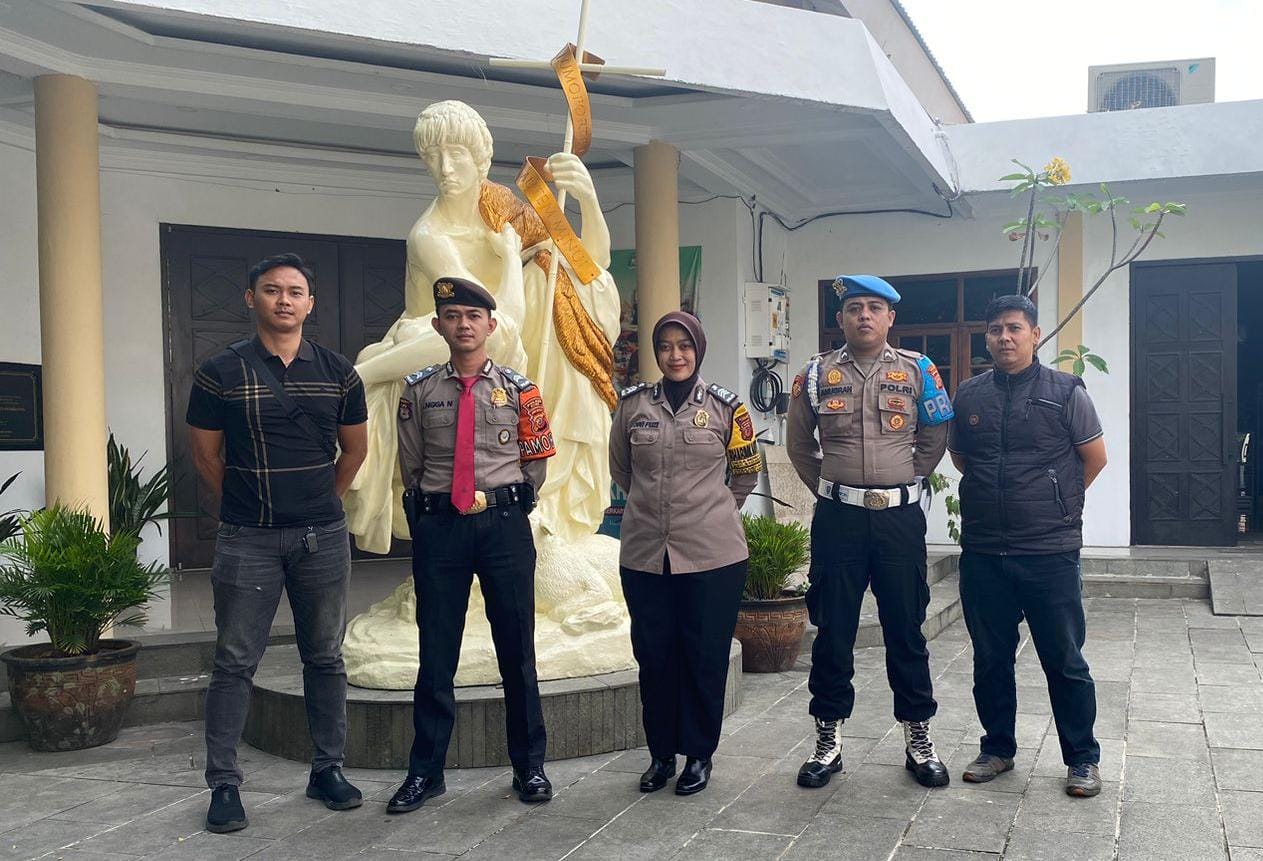 CIAMIS ~ Jajaran personel Polres Ciamis Polda Jawa Barat melaksanakan pengamanan kegiatan ibadah umat kristiani di wilayah Kabupaten Ciamis. Pengamanan ini dilaksanakan di sekitar Gereja Katolik Santo Yohanes Pembabtis Ciamis, Ciamis, Kabupaten Ciamis, Jawa Barat, Minggu (23/6/2024)