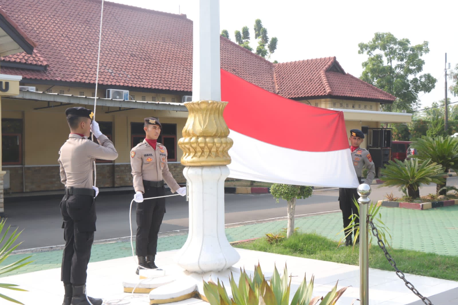 Wakapolres, para Kabag, para Kasat, para Kasi, perwira, dan ASN Polres Indramayu turut hadir dalam upacara tersebut, bersama dengan seluruh personel Polres Indramayu.