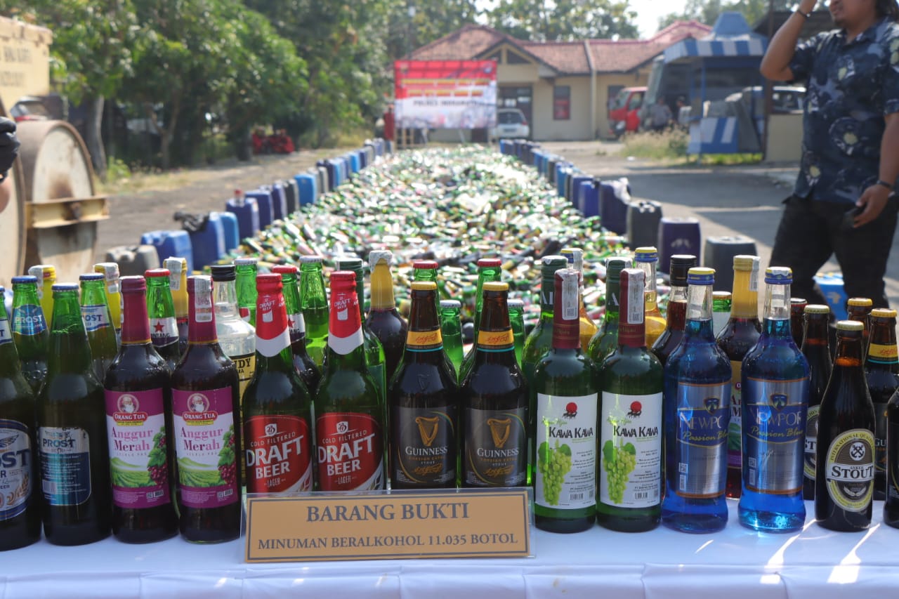 Kapolres Indramayu, AKBP M Fahri Siregar, menyatakan bahwa ribuan botol miras ini berasal dari berbagai jenis minuman.