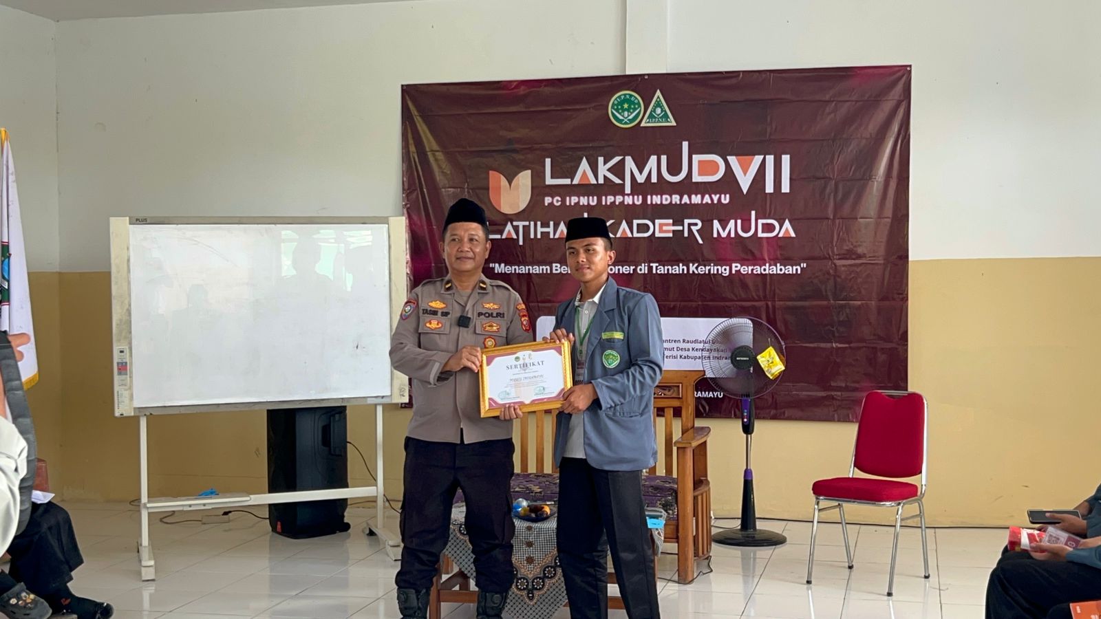 Indramayu – Polres Indramayu Polda Jabar melalui Sat Binmas, menghadiri sekaligus membuka kegiatan Latihan Kader Muda (LAKMUD) Ikatan Pelajar Nahdlatul Ulama (IPNU) dengan tema “Menanam Benih Visioner di Tanah Tandus Peradaban”.