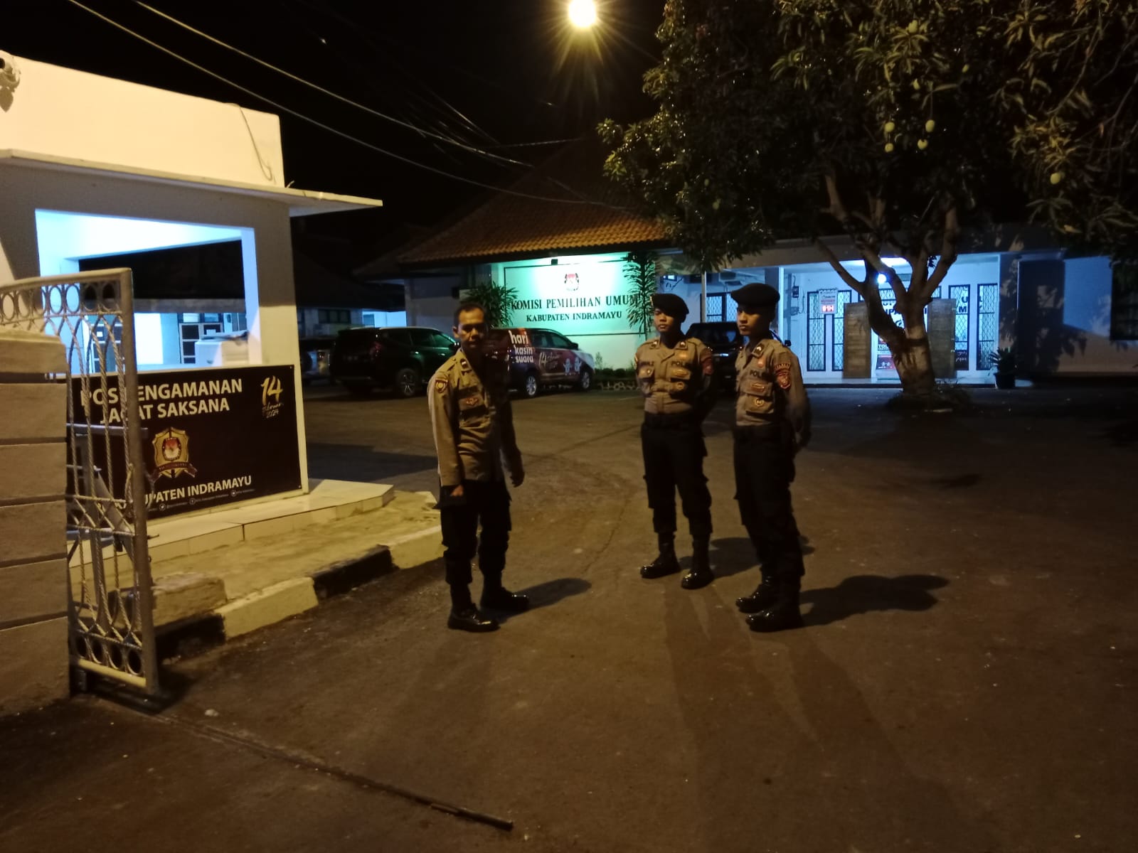 Dalam patroli malam tersebut, Polres Indramayu melakukan pengecekan di sekitar Kantor KPU, termasuk memastikan keamanan area sekitar dan mencegah potensi gangguan kamtibmas.