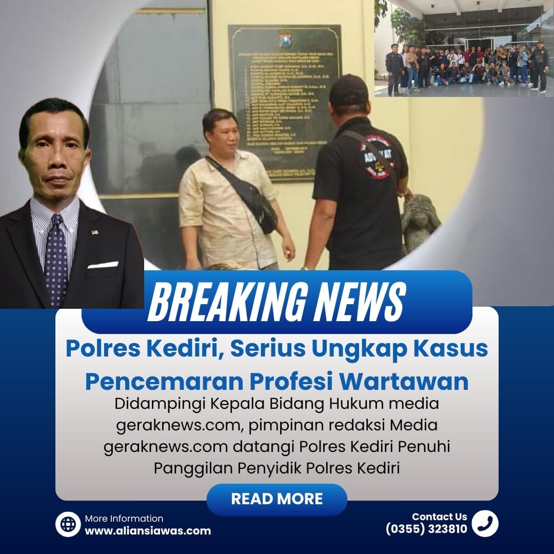 BUSERJATIM.COM || KEDIRI – Didampingi Kepala Bidang Hukum media geraknews.com, pimpinan redaksi Media geraknews.com datangi Polres Kediri Penuhi Panggilan Penyidik Polres Kediri. Selasa, 07/11/2023.