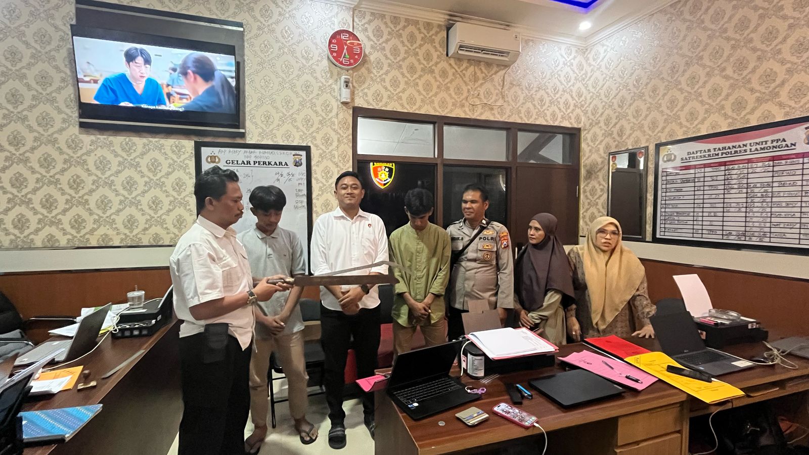 Saat ini, kedua pelaku berikut barang bukti berupa celurit dan parang diamankan di Mapolres Lamongan.