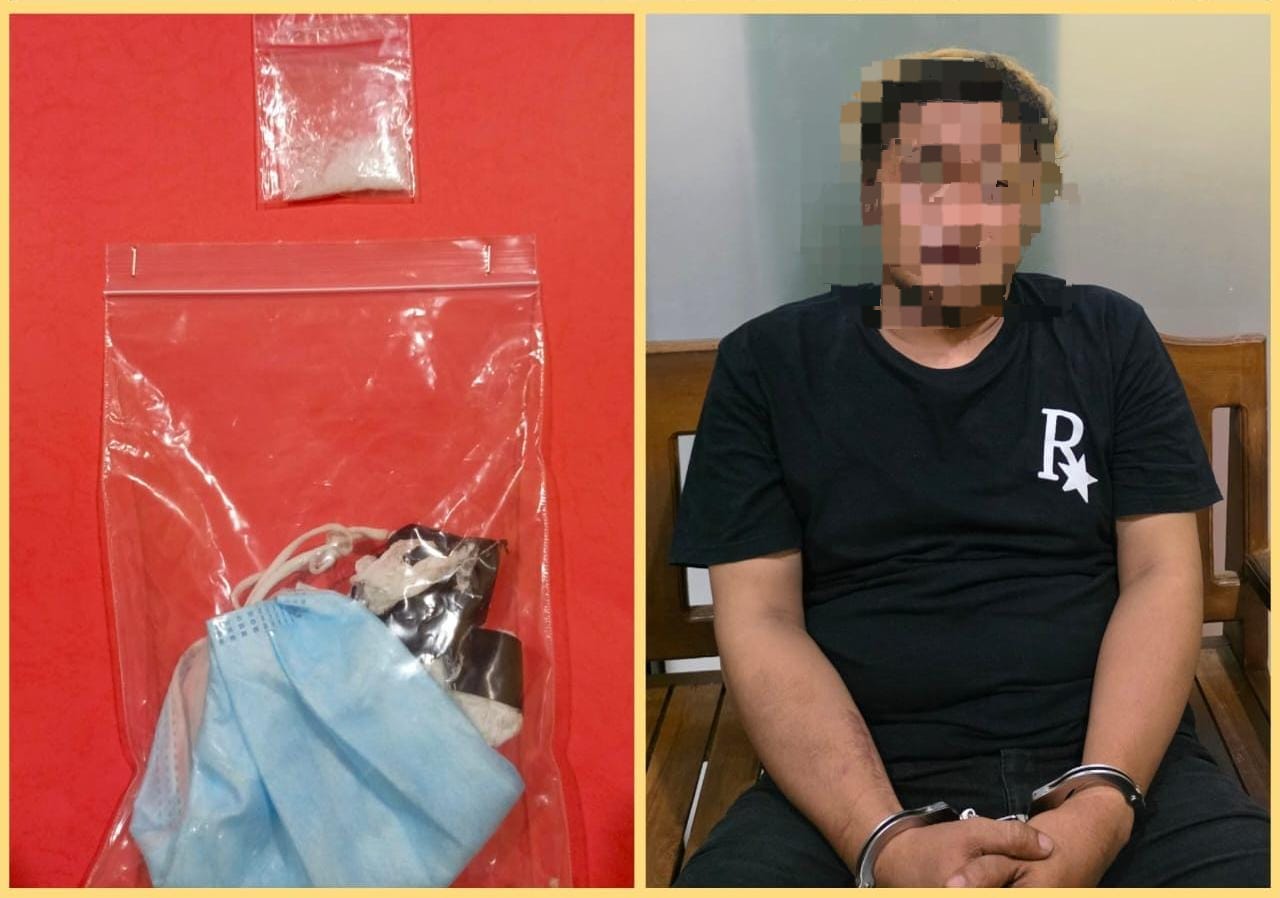 Saat dilakukan penangkapan, petugas menemukan satu gulungan masker berwarna biru yang disembunyikan di sekitar lokasi. Setelah diperiksa, di dalam masker tersebut terdapat plastik klip berisi serbuk kristal putih yang diduga sabu dengan berat netto 1,07 gram. Hasil tes urine terhadap pelaku juga menunjukkan hasil positif mengandung amphetamine dan methamphetamine.