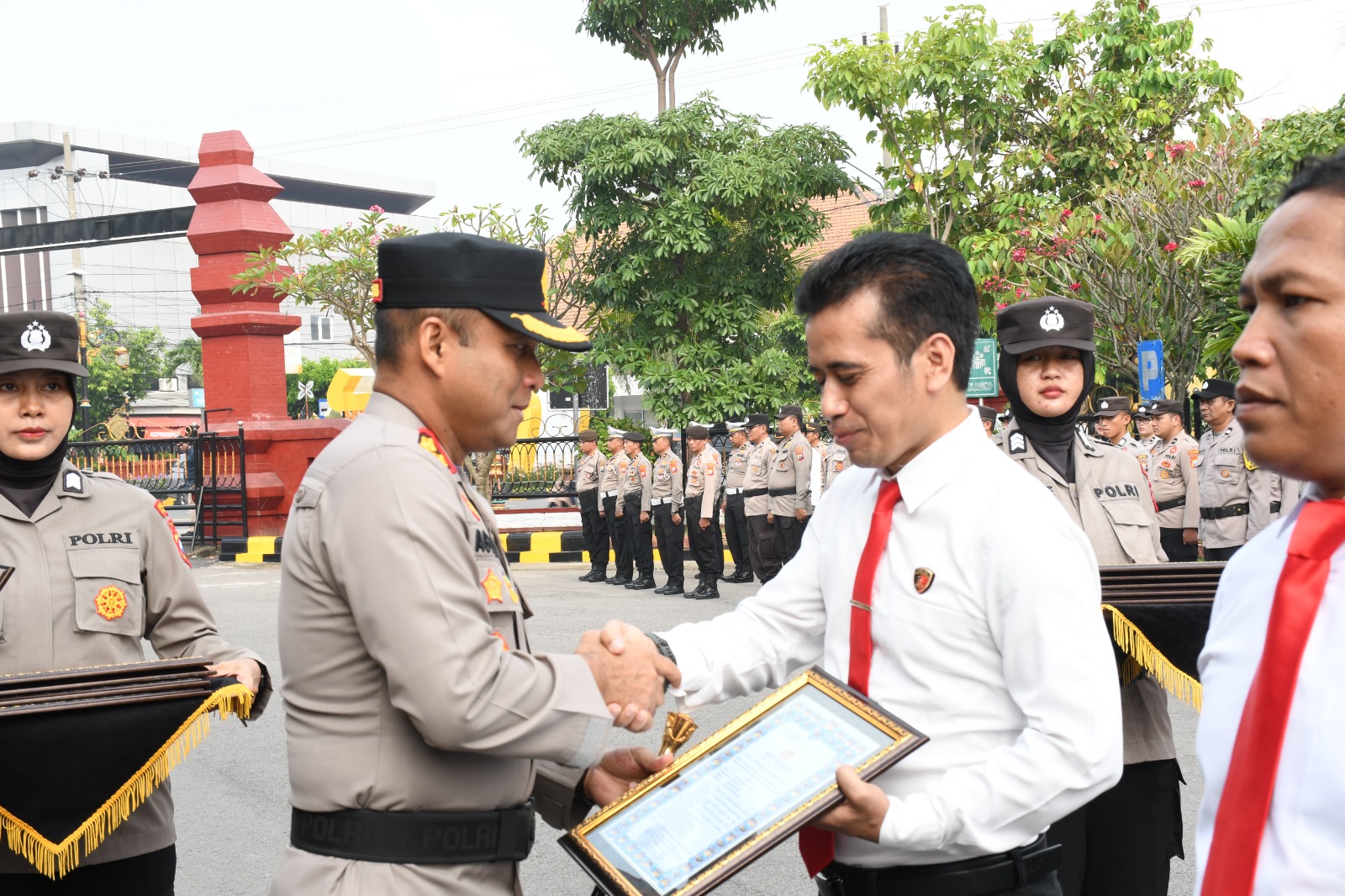 Dalam sambutannya, Kapolres Agus Dwi Suryanto menyampaikan apresiasi atas dedikasi dan prestasi para personel. Ia menekankan pentingnya integritas, kerja keras, dan profesionalisme dalam menjalankan tugas kepolisian demi menjaga ketertiban dan keamanan masyarakat.