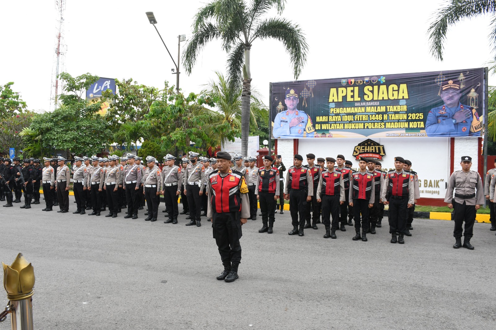 MADIUN ,BUSERJATIM.COM – Polres Madiun Kota menggelar Apel Gabungan untuk memastikan kesiapan pengamanan Malam Takbiran Idul Fitri 1446 H/2025 M. Apel yang berlangsung di halaman Mako Polres Madiun Kota Jalan Kompol Soenarto No.17, Kelurahan Madiun Lor, Kecamatan Manguharjo, Kota Madiun, dihadiri oleh sekitar 300 personel dari berbagai instansi terkait.