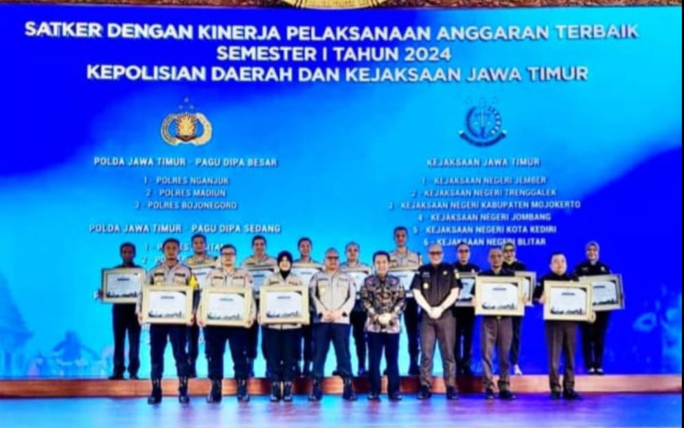 SURABAYA,BUSERJATIM.COM GROUP – Polres Madiun meraih penghargaan sebagai Satker dengan kinerja pelaksanaan anggaran terbaik nomor dua untuk semester I Tahun 2024 di lingkup Kepolisian Daerah Jawa Timur dan Kejaksaan Jawa Timur. Penghargaan tersebut diberikan oleh Kementerian Keuangan Republik Indonesia, Direktorat Jenderal Perbendaharaan, Kantor Wilayah Direktorat Jenderal Perbendaharaan Provinsi Jawa Timur.
