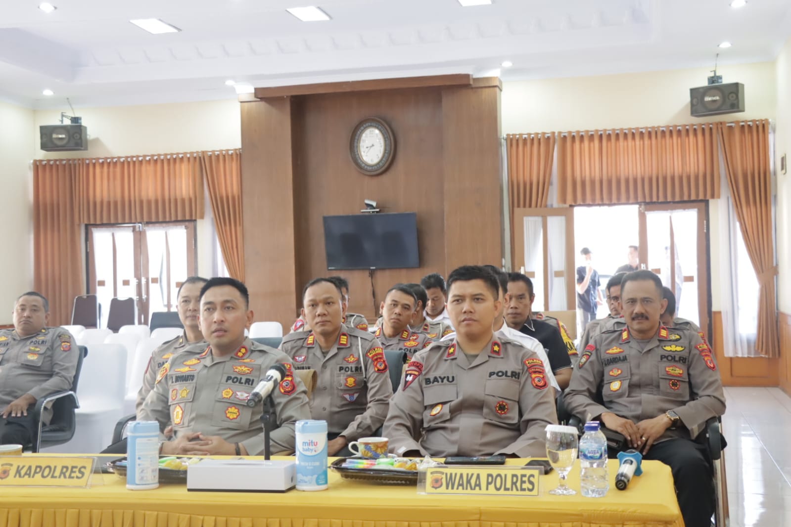 Majalengka, Kapolres Majalengka AKBP Indra Novianto,S.I.K. didampingi Wakapolres KOMPOL Bayu Purdantono,S.I.K.,M.I.K. dan PJU Polres Majalengka mengikuti Latihan Pra Operasi (Lat Pra Ops) Lodaya 2023 Polda Jabar Secara Virtual bertempat di Aula Kanyawasista, Rabu (5/7/2023)