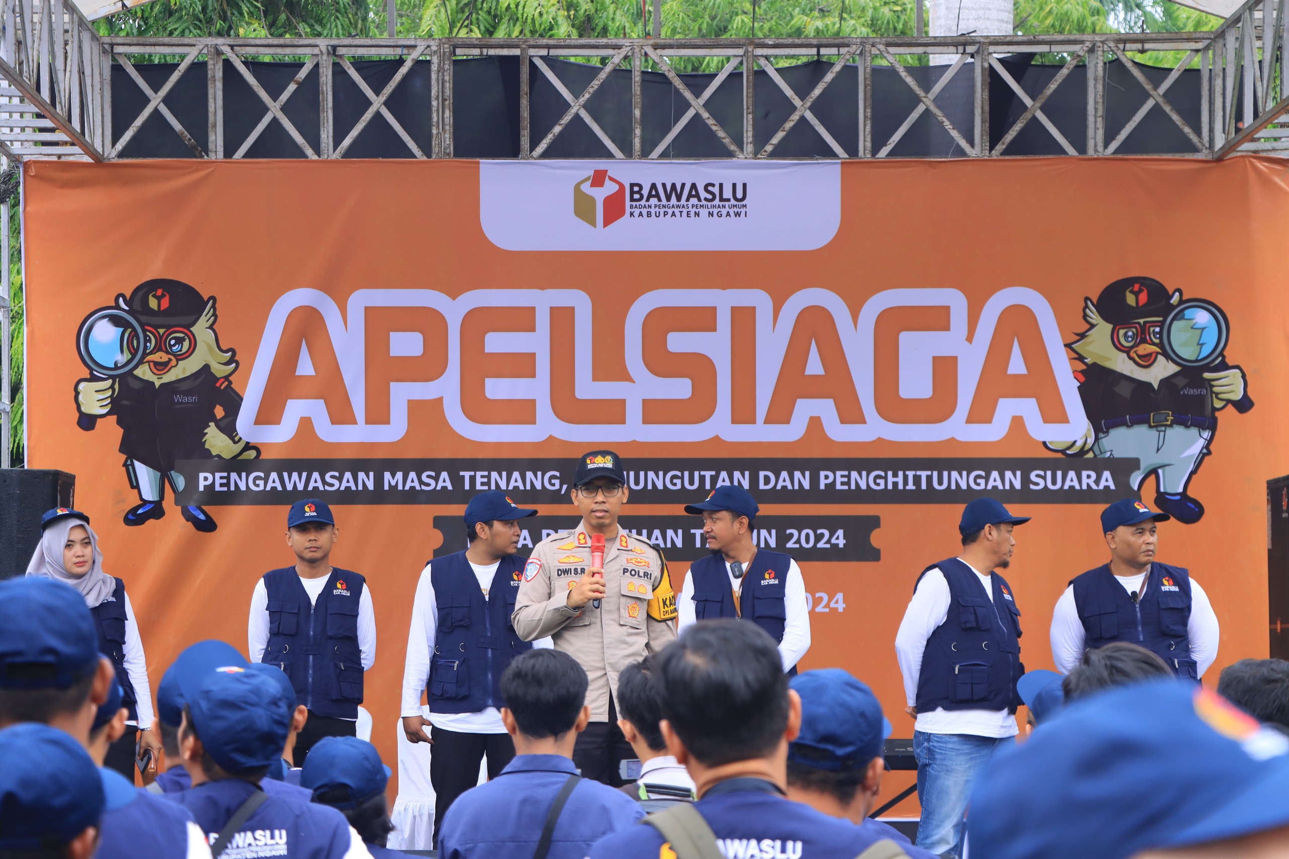 Apel akbar ini dihadiri lebih dari 2.000 peserta, termasuk Pj Bupati Ngawi Ir. Tiat Suwardi, M.Si., Kapolres Ngawi AKBP Dwi Sumrahadi Rakhmanto, S.H., S.I.K., M.H., Dandim 0805/Ngawi Letkol Arh Setu Wibowo, serta jajaran Forkopimda lainnya. Ketua Bawaslu Kabupaten Ngawi, Yohanes Pradana Vidya K., bertindak sebagai penanggung jawab kegiatan.