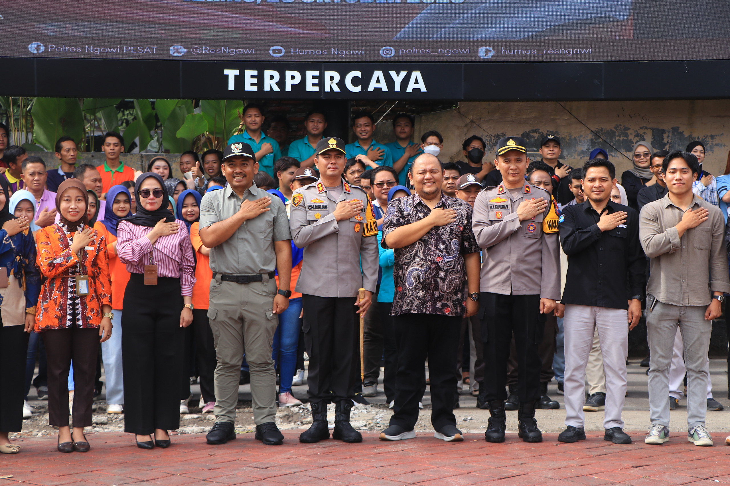 Kegiatan dipimpin langsung oleh Kapolres Ngawi AKBP Charles Pandapotan Tampubolon, S.I.K., S.H., M.H., didampingi Bupati Ngawi H. Ony Anwar Harsono, S.T., M.H., dan Wakil Ketua III DPRD Ngawi Imam Nasrulloh, S.E., M.Si.