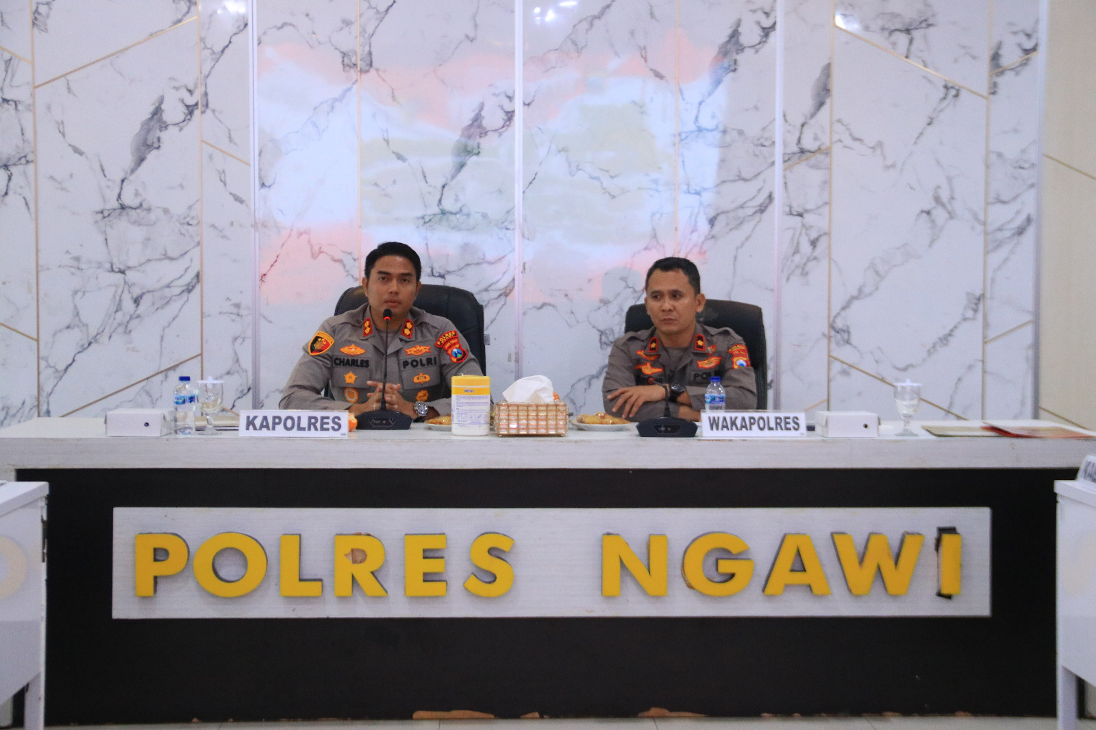 Kapolres Ngawi, AKBP Charles Pandapotan Tampubolon, S.I.K., S.H., M.H., menegaskan pentingnya soliditas antara aparat keamanan dan elemen masyarakat untuk menjaga situasi kamtibmas tetap kondusif selama bulan Suro.