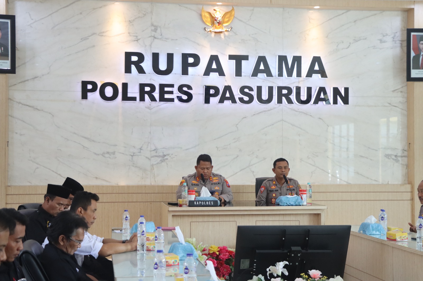 Bertempat di Ruang Rupatama Polres Pasuruan, jajaran pimpinan Polres Pasuruan bersama tokoh-tokoh perguruan silat Pagar Nusa, PSHT, IKSPI, dan PSHW dari wilayah Kabupaten Pasuruan hadir untuk menyimak dan mengikuti seluruh rangkaian kegiatan.