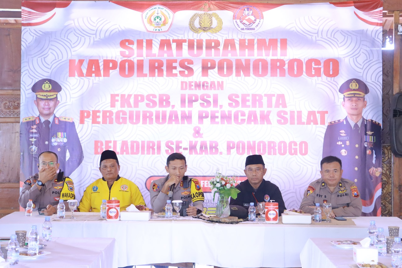 PONOROGO, BUSERJATIM.COM GROUP – Polres Ponorogo Polda Jatim menggelar silaturahmi dengan Forum Komunikasi Pencak Silat dan Bela Diri (FKPSB), Ikatan Pencak Silat Indonesia (IPSI), serta para ketua perguruan pencak silat dan bela diri se-Kabupaten Ponorogo Jawa Timur.