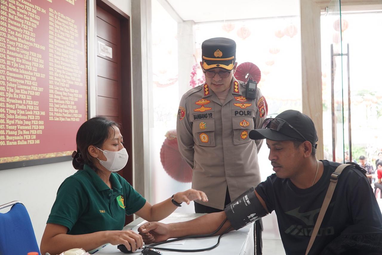 Kapolresta Denpasar Kombes Pol. Bambang Yugo Pamungkas, SH.,SiK.,M.Si. menyambangi langsung kegiatan Vaksinasi dengan didampingi Kapolsek Denpasar Barat Kompol I Gusti Agung Made Ari Herawan,S.I.K.