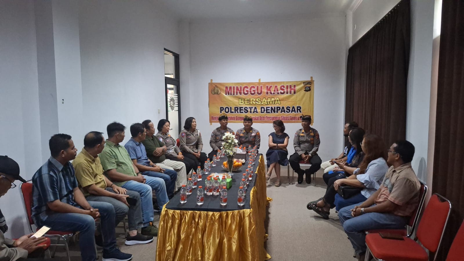 Kegiatan tersebut dirangkai dengan program Minggu Kasih yang dihadiri langsung oleh Kasat Binmas Polresta Denpasar, AKP I Gede Endrawan, SH, MH, didampingi Kanit Binpolmas Sat Binmas, AKP I Made Widarta. Sebanyak 15 jemaat hadir dalam acara ini dan disambut hangat oleh pendeta Ester Budiono.