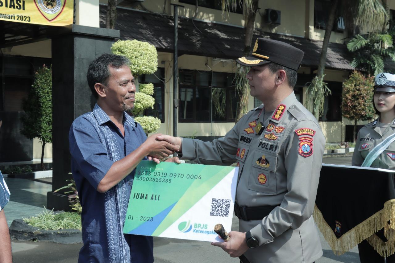 Kartu BPJS Ketenagakerjaan yang dibagikan pada saat kegiatan apel yang digelar di halaman depan Polresta Malang Kota tersebut diberikan secara gratis.