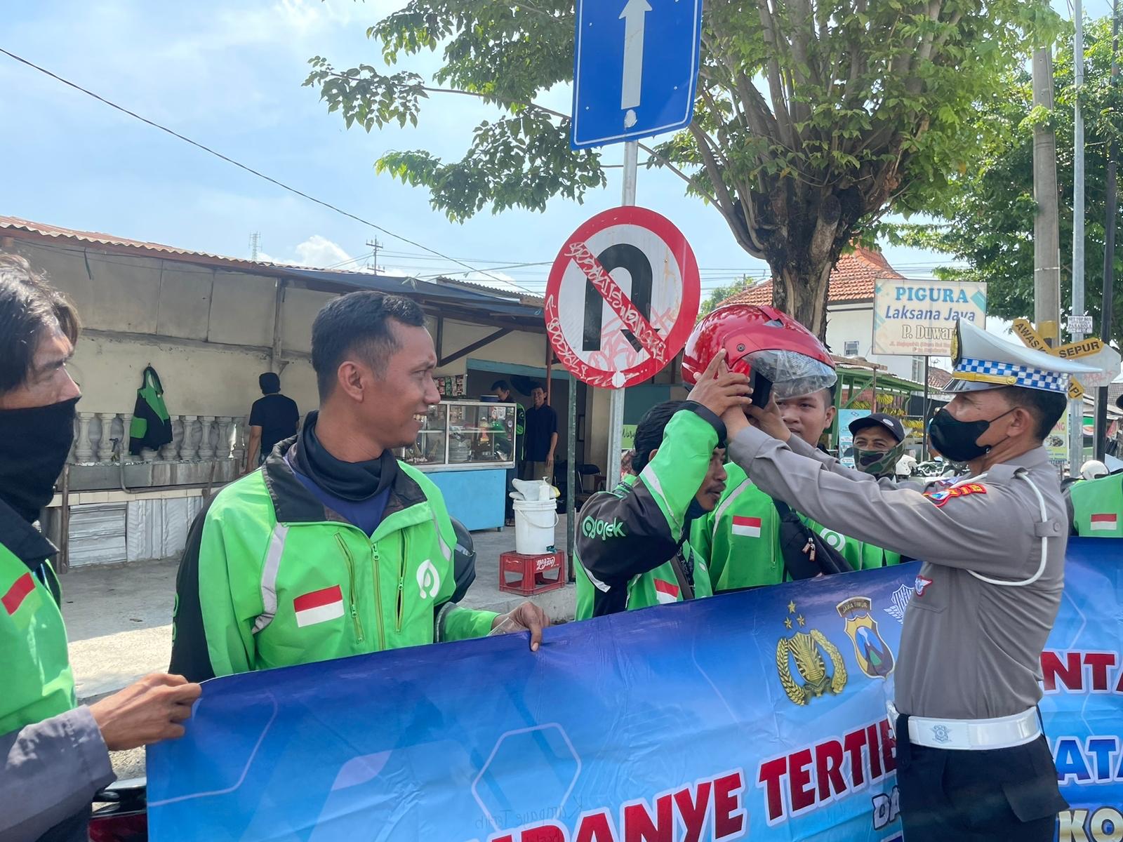Kasat Lantas Polresta Mojokerto Polda Jatim AKP Heru melalui Kanit Dikyasa IPTU Sodi menuturkan, bahwa tujuan kegiatan tersebut untuk mengedukasi dan mengajak kepada komunitas ojek maupun kepada abang becak untuk selalu tertib berlalu lintas terutama selalu mengunakan helm baik pengendara maupun penumpang sepeda motor.