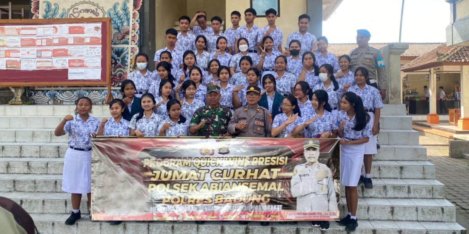 Seluruh Polres dan Polsek di jajaran Polda Bali setiap Jumat secara masif menggencarkan Program Jumat Curhat. Termasuk Polsek Abiansemal, dan kali ini digelar di SMAN 1 Abiansemal, Desa Blahkiuh, Kecamatan Abiansemal, Kabupaten Badung, Bali, Jumat (28/07/2023).