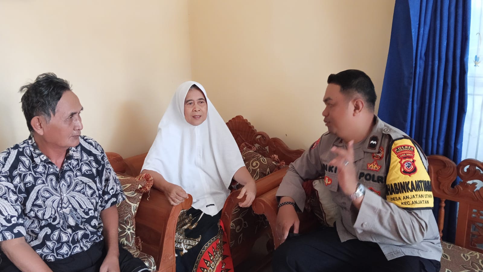 Indramayu,— Bhabinkamtibmas Polsek Anjatan, Polres Indramayu Polda Jabar AIPDA Diki Hendrian, menyambangi warga Desa Anjatan Utara, Kecamatan Anjatan, Kabupaten Indramayu, dalam rangka memperkuat komunikasi dan membangun kesadaran masyarakat akan pentingnya menjaga stabilitas keamanan di lingkungan masing-masing, Jum’at (11/7/2025).