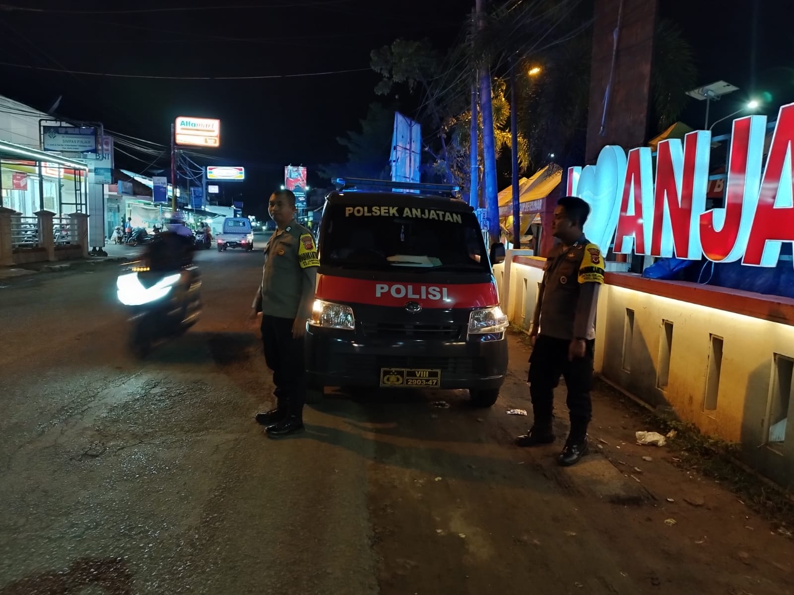 Seperti yang terlihat, dalam kegiatan ini personil Polsek Anjatan melakukan pengawasan tindak kriminalitas di lokasi jalan raya di wilayah hukum Polsek Anjatan, Kabupaten Indramayu, Sabtu (07/10/2023) malam.