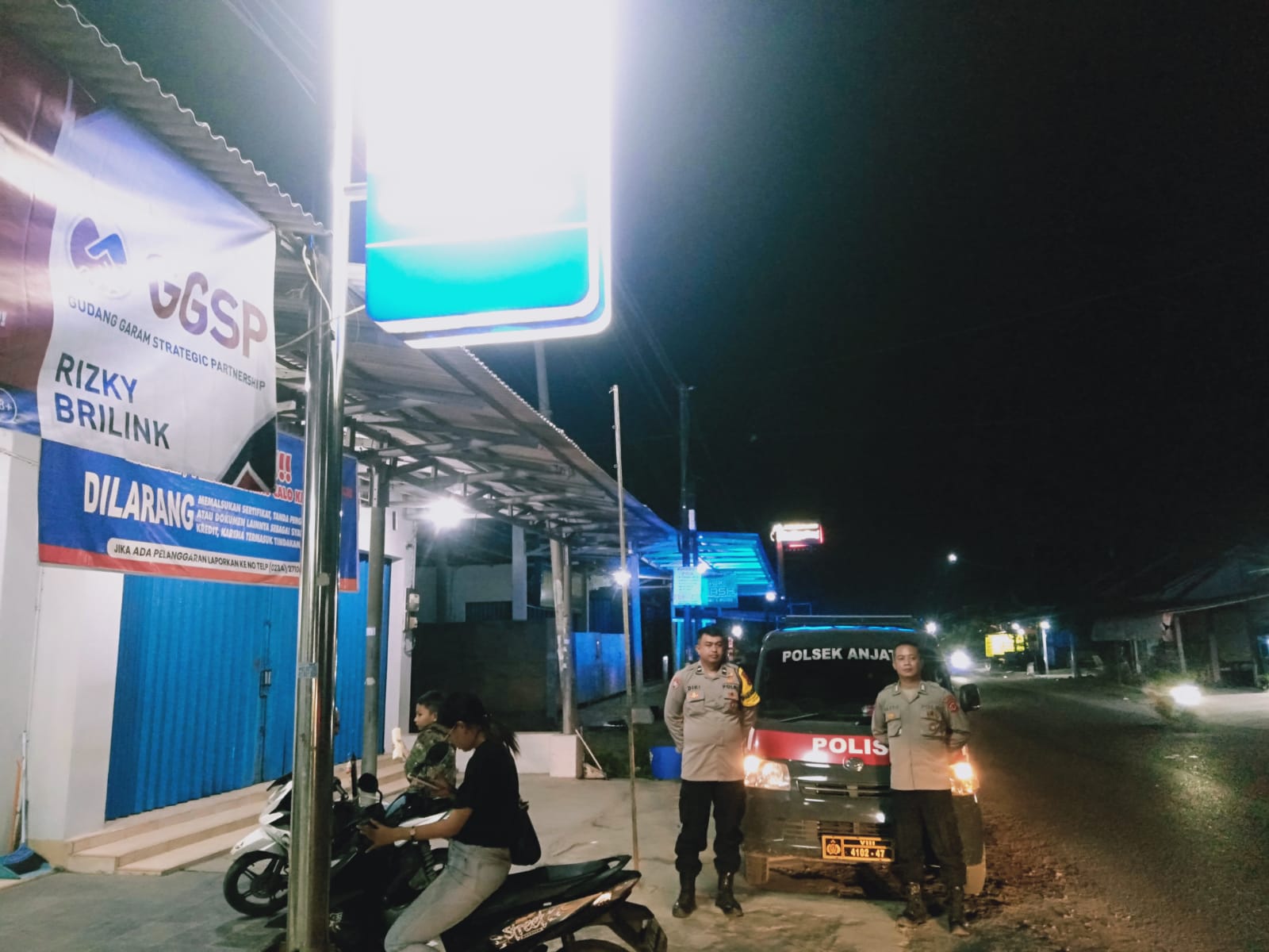 Sambung Kapolsek, dalam patroli tersebut petugas menyasar daerah rawan, dengan titik patroli seperti Obvit SPBU, Perbankan di wilayah Kecamatan Anjatan, Kabupaten Indramayu.
