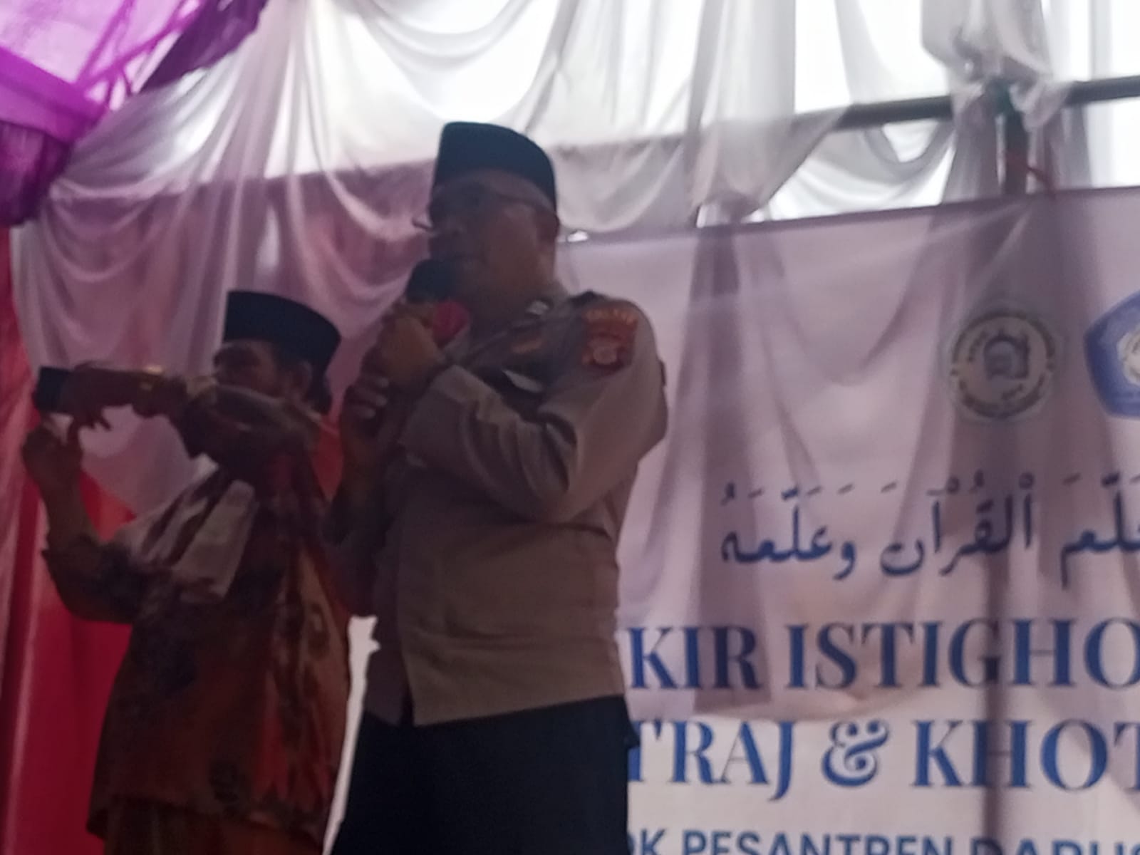 Indramayu – Dalam upaya mempererat silaturahmi dengan masyarakat, Polsek Anjatan Polres Indramayu Polda Jabar menghadiri kegiatan Dzikir Istighosah Qubro dan Khotmil Quran yang digelar di Yayasan Pondok Pesantren Darussolihin Azzamzami, Dusun Karangjaya, Desa Mangunjaya, Kecamatan Anjatan, Kabupaten Indramayu, Minggu (23/2/2025).