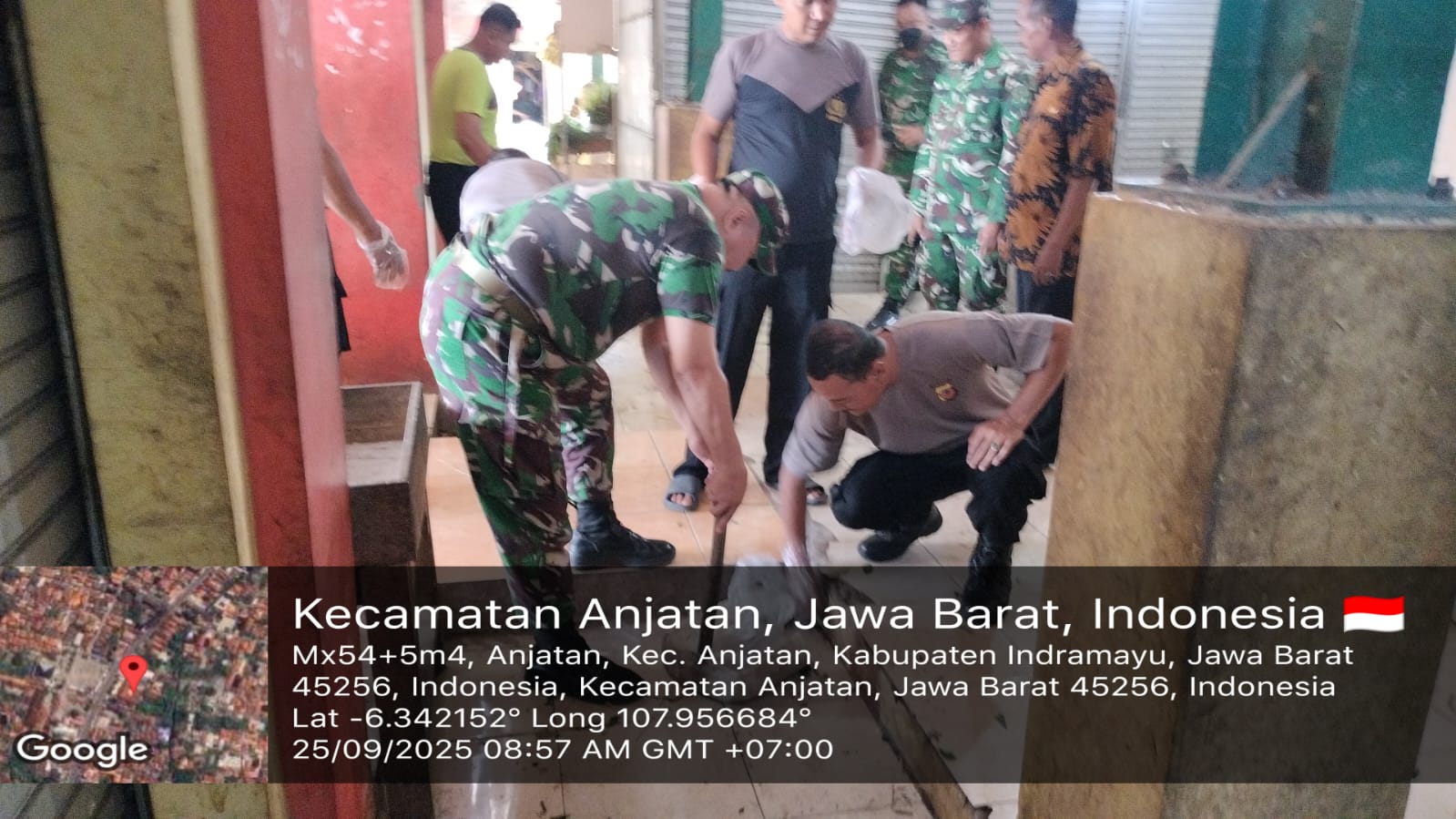 Indramayu – Polsek Anjatan jajaran Polres Indramayu Polda Jabar turut berpartisipasi dalam kegiatan Karya Bhakti di Pasar Anjatan, Kecamatan Anjatan, Kabupaten Indramayu. Kamis (25/9/2025)