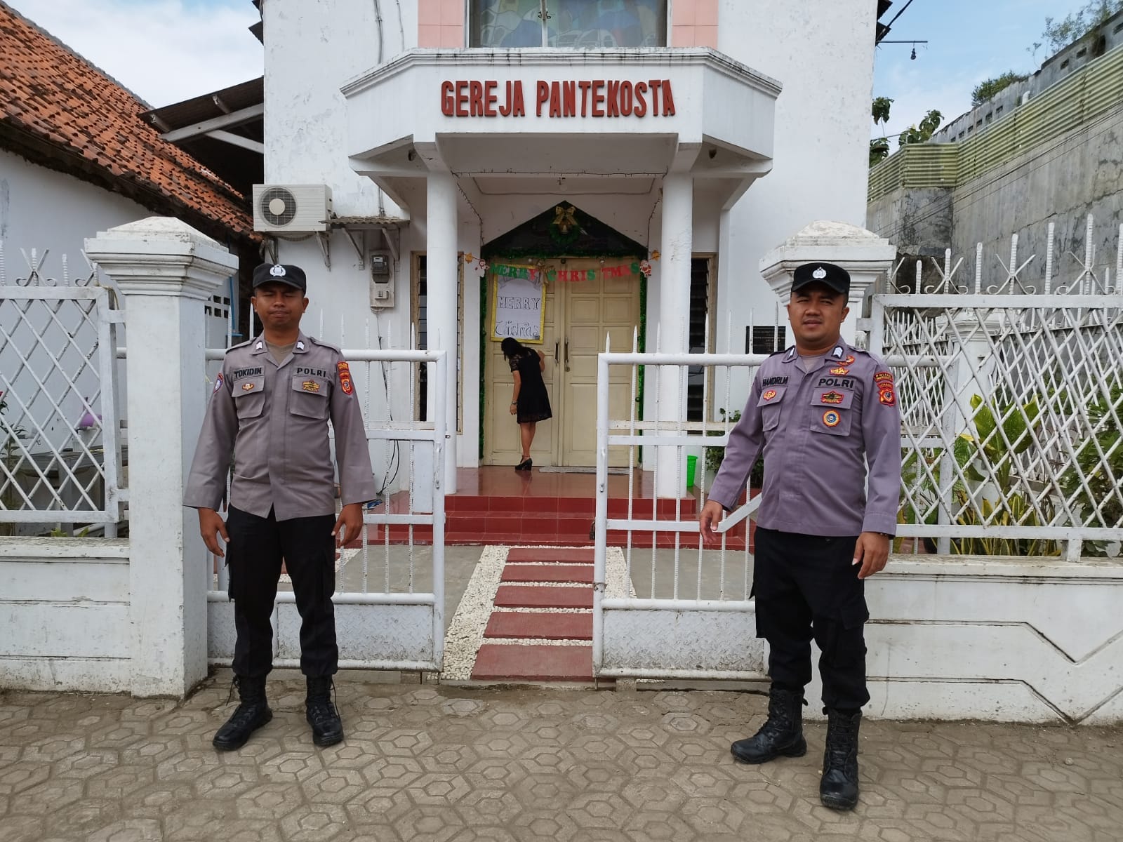 Indramayu – Dua personel Polsek Anjatan Polres Indramayu Polda Jabar tampak berjaga di depan dan dalam area Gereja Pantekosta, Desa Anjatan, Kecamatan Anjatan, Kabupaten Indramayu, Minggu pagi (6/7/2025).