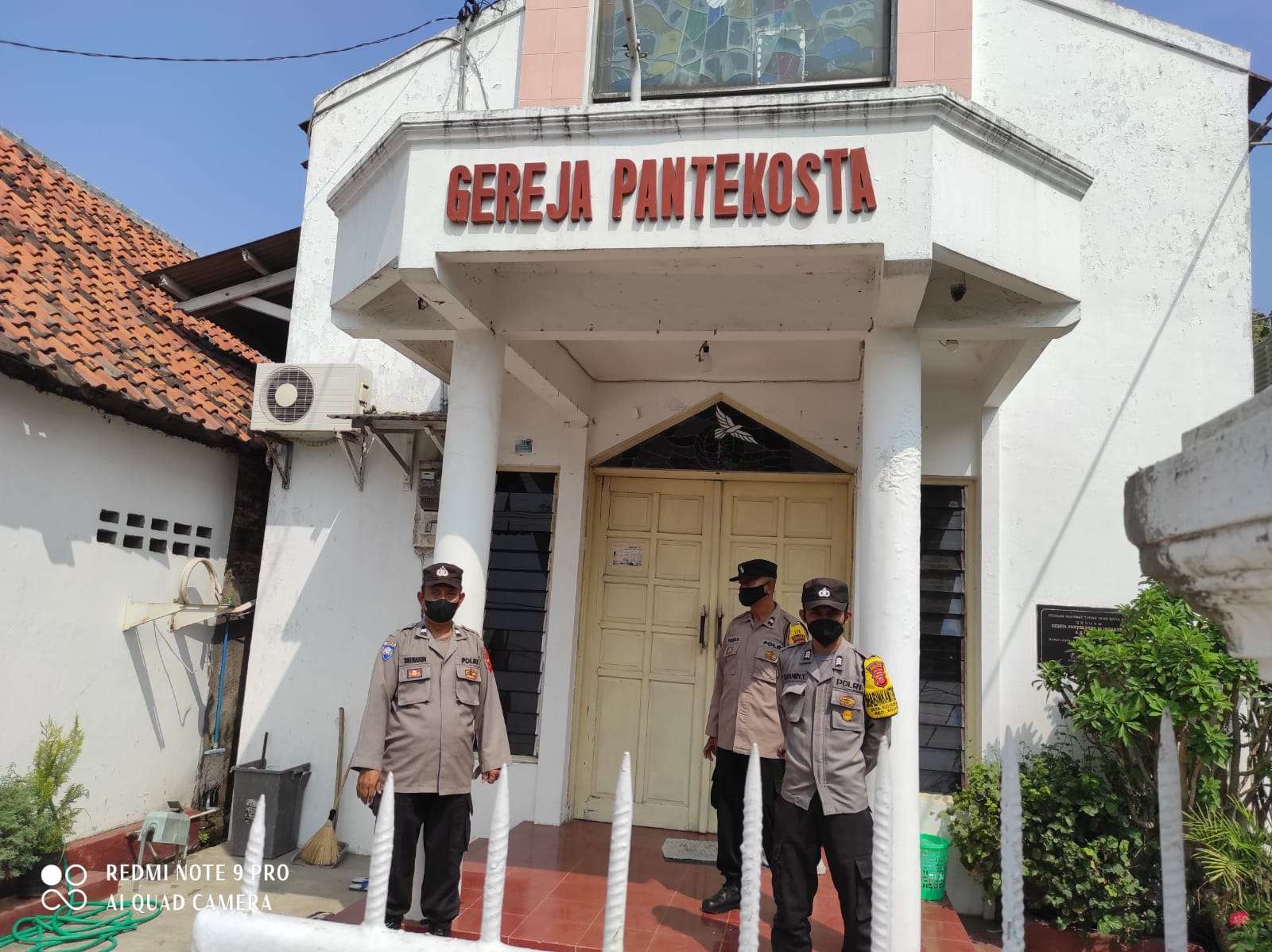 Indramayu,— Personil Polsek Anjatan jajaran Polres Indramayu Polda Jabar melaksanakan kegiatan pengamanan (PAM) kebaktian rutin di Gereja Pantekosta Desa Anjatan Dusun Lapang Bola, Kecamatan Anjatan, Kabupaten Indramayu, Minggu (03/09/2023).