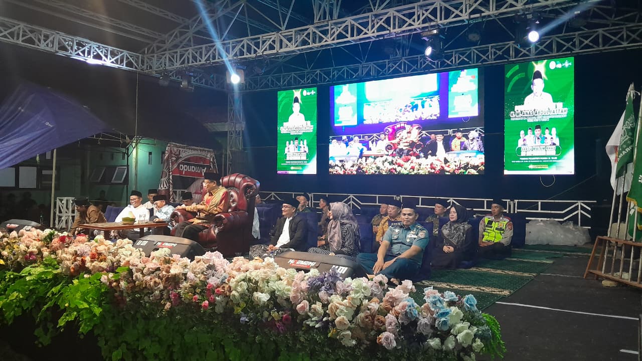 Indramayu – Polsek Arahan Polres Indramayu Polda Jabar menghadiri kegiatan pengajian umum dalam rangka Maulid Nabi Muhammad SAW sekaligus peringatan khaul ke-16 KM Anas Abdul Fattah di Desa Pranggong, Kecamatan Arahan, Sabtu malam (20/9/2025).