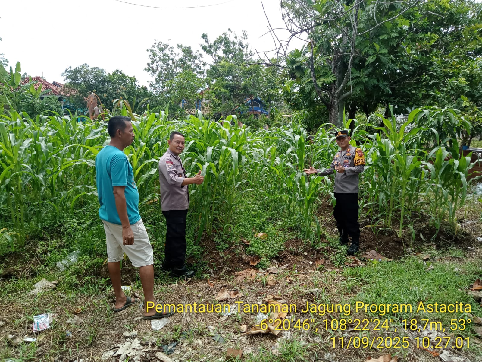 Indramayu – Kapolsek Balongan, Polres Indramayu Polda Jabar AKP Dedi Wahyudi, S.H., M.H., bersama Bhabinkamtibmas, Aiptu Nursalim, monitoring dan pendampingan pemanfaatan lahan pekarangan dalam rangka mendukung Program Asta Cita ketahanan pangan, Kamis (11/9/2025).