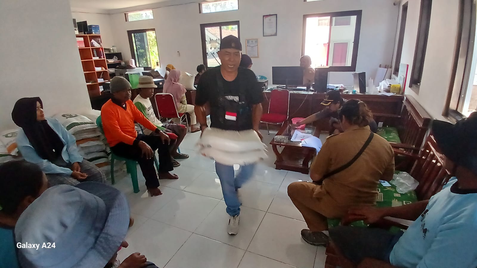 Data warga kemudian dicocokkan oleh petugas, dan setelah verifikasi, beras diserahkan kepada mereka.